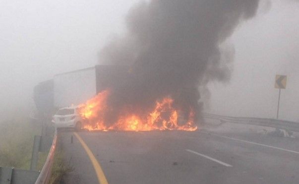 Una carambola ocurrió en la carretera Saltillo-Monterrey, en el kilómetro 38, provocando un incendio y afectando a cuatro vehículos más, la mañana de este jueves en Saltillo, Coahuila.
