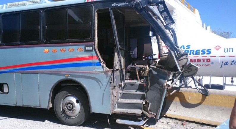 La pesada unidad presentó una falla mecánica, misma causó que el vehículo se volcara, mientras el operador intentaba controlarlo, y terminara golpeando a dos tráileres más y a un camión de pasajeros.