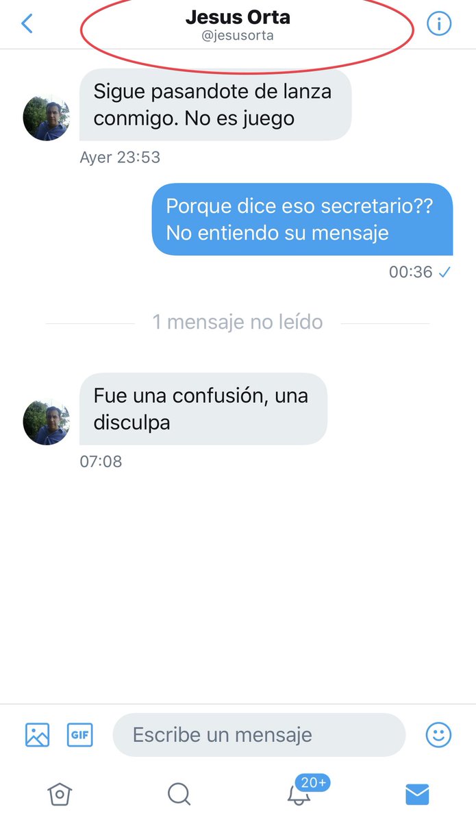 Vía mensaje privado en Twitter, Jiménez recibió un mensaje de advertencia desde la cuenta personal del funcionario, misma que no presenta actividad desde 2015.