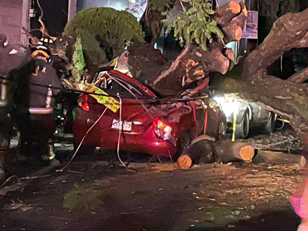 Las fuertes lluvias y granizada que cayeron en la Ciudad de México provocaron el colapso de un árbol sobre un auto en el que se encontraba una pareja