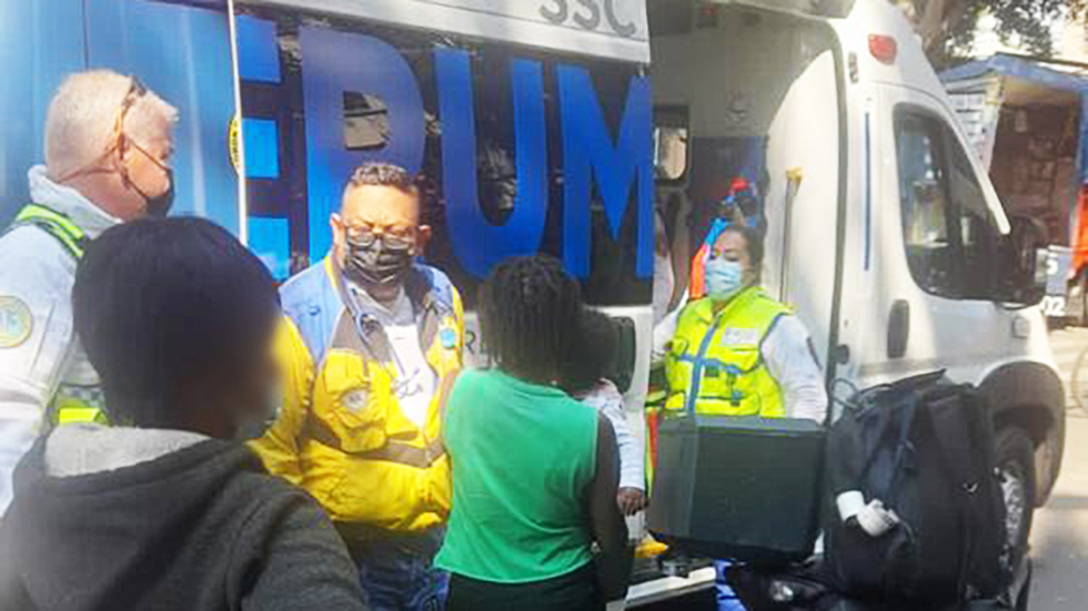 Paramédicos del Escuadrón de Rescate y Urgencias Médicas (ERUM) llegaron al lugar y atendieron a 15 migrantes haitianos con problemas de salud.