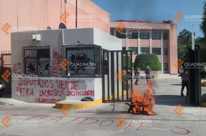 Rompieron cristales del Palacio Legislativo, realizaron pintas y dañaron puertas, así como algunos vehículos que se encontraban en el lugar