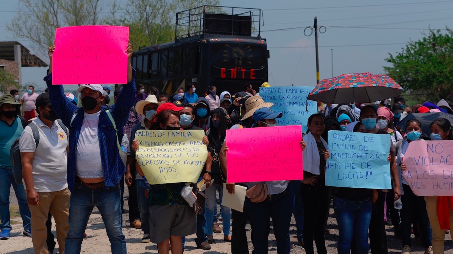 “Padres de Familia de la Mactumactzá en pie de lucha”, “Padres de familia de San Francisco del Mar, Oaxaca, exigimos la liberación inmediata de nuestras hijas”, “Exigimos castigo a los responsables de la violación de derechos de nuestros hijos”, fueron los mensajes que portaron los manifestantes en mantas y pancartas.