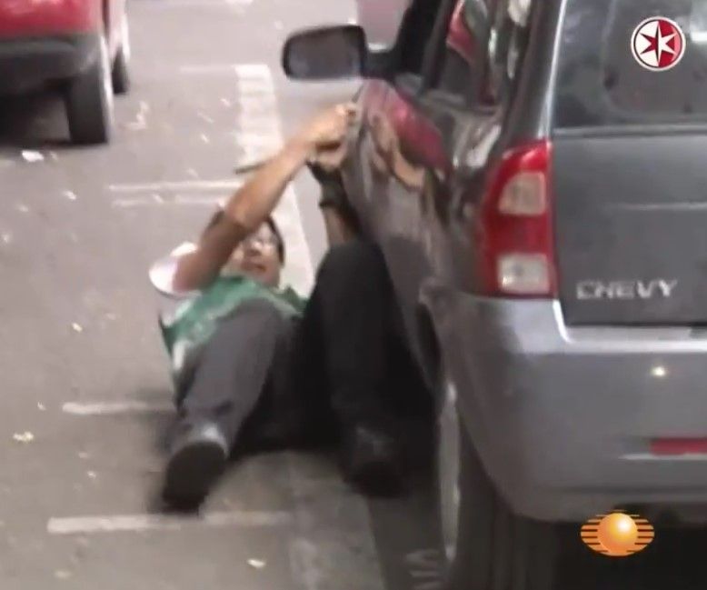 Conductor arrastra a empleado de parquímetro por calles de la Roma - arrastrado-parquímetro-DF-Noticieros-Televisa2