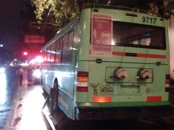La circulación sobre Eje Central se vio afectada y ningún pasajero del Trolebús resultó herido aunque el conductor fue trasladado a la Coordinación Territorial Benito Juárez.