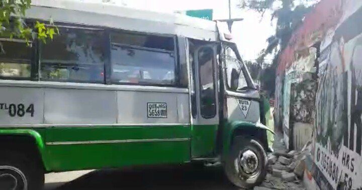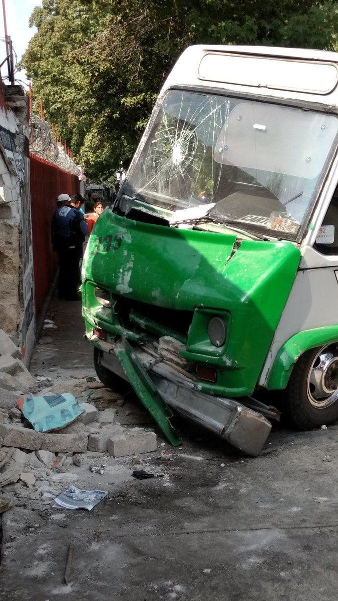 Una unidad de transporte público de la Ciudad de México se impactó contra una barda en la esquina del Eje 3 Norte Calzada Camarones y la Calzada de los Gallos, en la colonia San Salvador Xochimanca, en la delegación Azcapotzalco.
