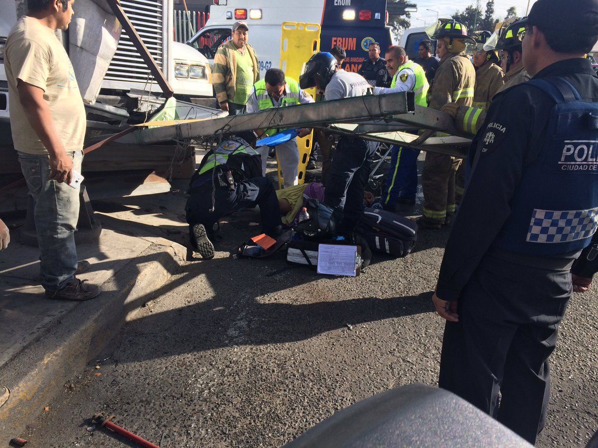 Un hombre fue trasladado en una ambulancia del Escuadrón de Rescate y Urgencias Médicas (ERUM) al hospital de Balbuena en tanto el chofer del camión fue valorado por paramédicos en el lugar.