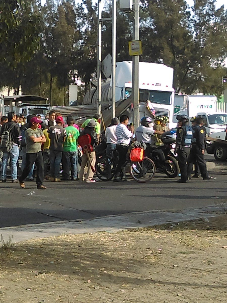 En el cruce donde ocurrió el accidente se encontraban varias personas esperando el transporte público, pero una persona no alcanzó a hacerlo, por lo que resultó prensada por la unidad.