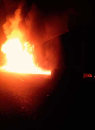 El choque ocasionó que ambos vehículos se incendieran, causando pérdida total, pero los dos conductores resultaron ilesos.
