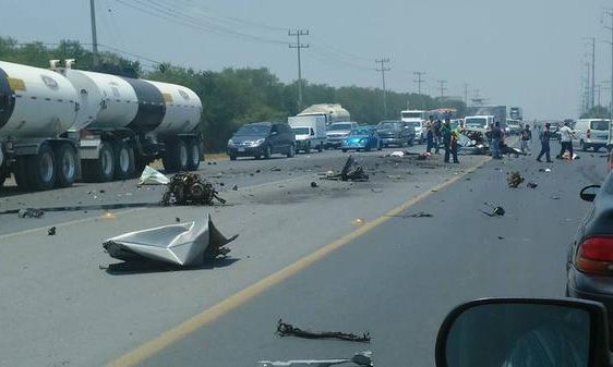 Un choque se suscitó en el kilómetro 24 de la carretera Monterrey-Reynosa alrededor de las 13:30 h que dejó como saldo tres personas muertas y cinco heridos.