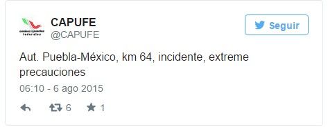 La mañana del día de hoy, aproximadamente a las 06:00 h se registró un choque entre un autobús de pasajeros de la línea Estrella Roja y un camión de carga en el kilómetro 65 de la carretera México-Puebla, con dirección a la Ciudad de México.