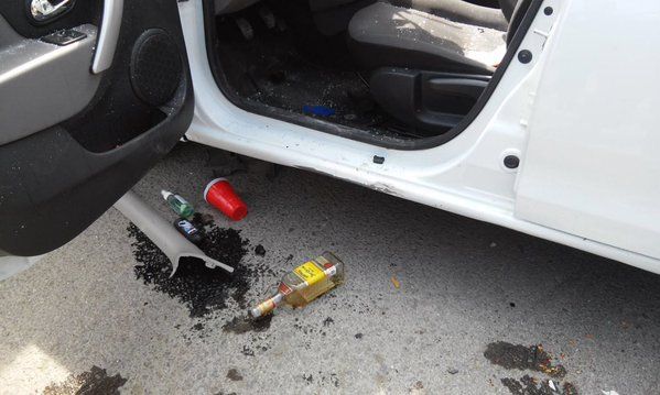 En el interior del vehículo en el que viajaban tres mujeres jóvenes y un hombre, se encontró una botella de tequila, así como vasos rojos, sin embargo no se ha confirmado que el consumo del alcohol haya sido la causa del accidente.