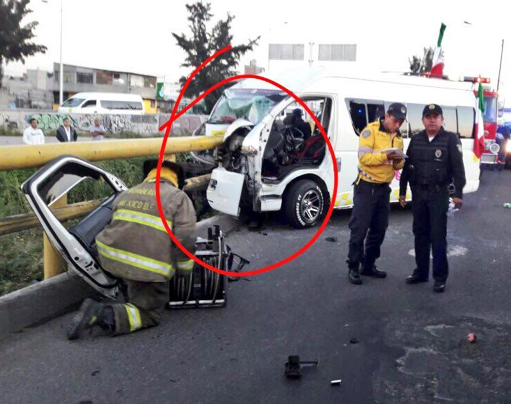 Pasajeros de la unidad informaron que el conductor no circulaba a alta velocidad, pero, resultado del impacto, el frente de la combi quedó incrustada contra la estructura, lo que provocó que dos mujeres, que viajaban como copilotos, resultaran prensadas.