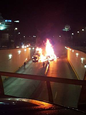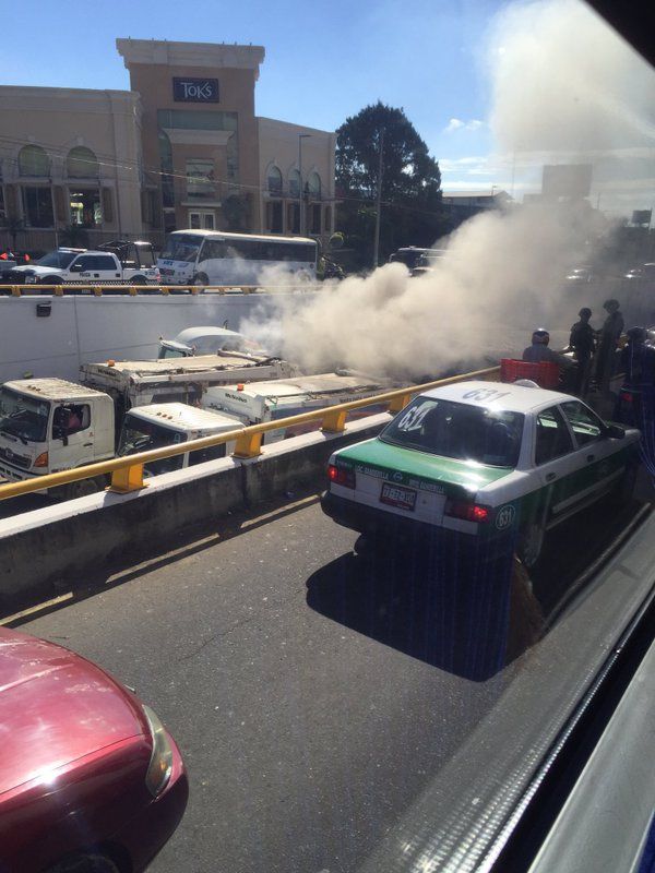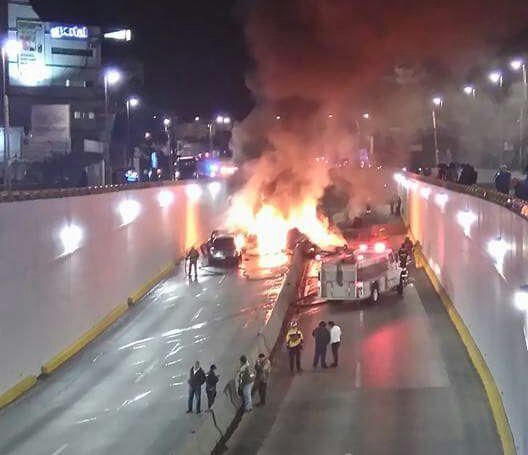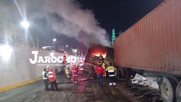 Dos tráileres y una camioneta sobre la Avenida Lázaro Cárdenas, en la ciudad de Xalapa, Veracruz, por el exceso de velocidad, chocaron a la altura de la Araucaria, provocando el incendio de los tres vehículos.