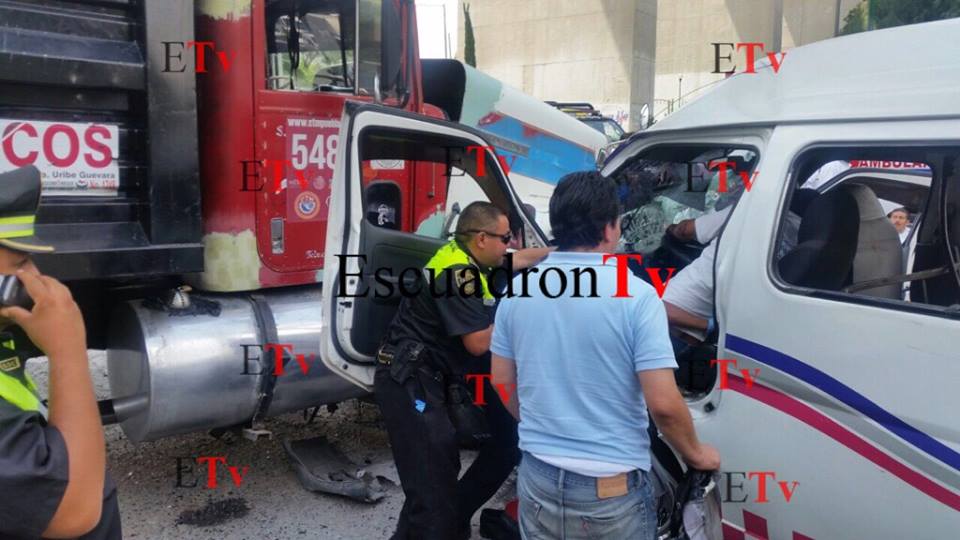 Una unidad de transporte público chocó contra un camión de volteo en el municipio de Atizapán de Zaragoza, dejando 17 heridos