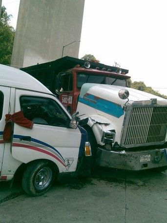 El accidente ocurrió entre una combi de transporte público de la Ruta 79, con destino a Minas; y un camión de volteo color negro con rojo.