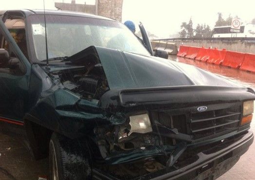 Los lesionados presentaban dolor en las cervicales luego de que los vehículos chocaron uno con otro en carambola, aparentemente por la falta de pericia al volante del conductor de la camioneta Ford verde quien intentó hacer una maniobra de acceso a una zona en obras.