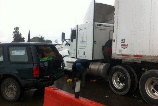 Los vehículos involucrados fueron un tráiler blanco con caja el cual se impactó contra una camioneta Ford tipo pick up de modelo antiguo, además de una camioneta blanca Chevrolet Silverado, un Chevrolet Matiz blanco y una Ford Explorer color verde, unidades que quedaron siniestradas en la rúa en mención.