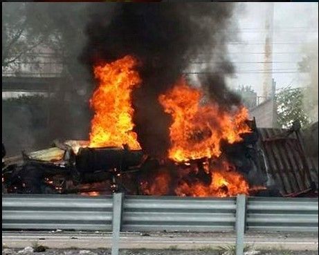 #Video que circula en la redes sociales del choque e incendio de un tráiler, km. 122 autopista México Querétaro. pic.twitter.com/kyn36r2XVu