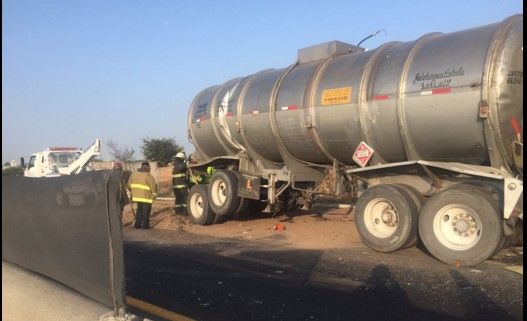 Debido al impacto del tráiler que se estrelló contra la parte trasera de un semiremolque tipo cisterna, se vertieron 30 mil litros de gasolina sobre la arteria vial.