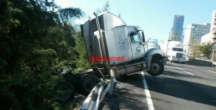 Servicios de emergencia ya se encuentran en el lugar, para reincorporar el vehículo pesado sobre la vialidad. Evite la zona.