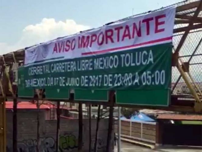 La Secretaría de Comunicaciones y Transportes (SCT) dio a conocer que los miércoles de junio, julio, agosto y parte de septiembre, la carretera federal México-Toluca tendrá cierres nocturnos totales, entre las 23:00 y 05:00 h.