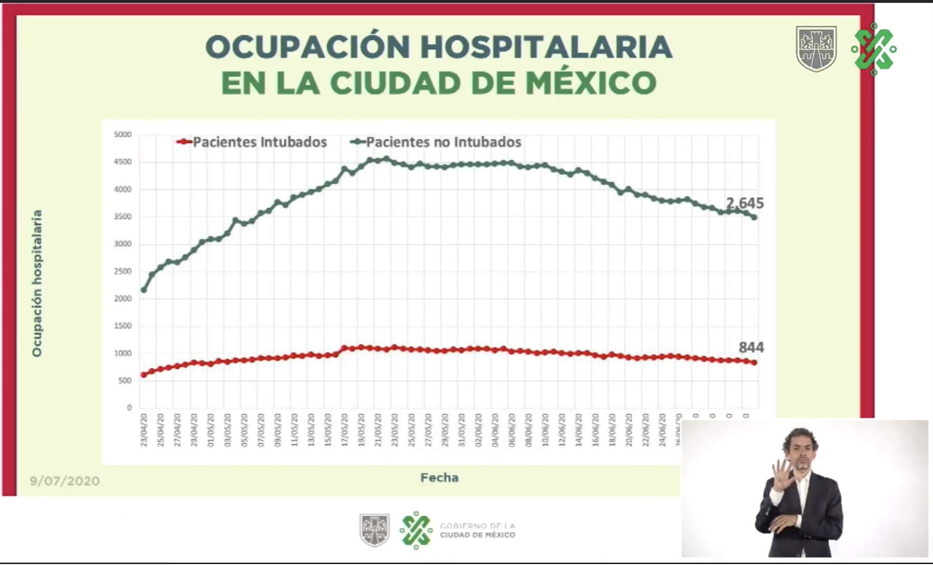 La Ciudad de México reporta 2 mil 645 hospitalizados en camas generales y 844 pacientes intubados.