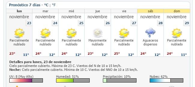 El organismo explicó que en ambas entidad habrá una temperatura mínima de tres a 10 grados Celsius y una máxima de 19 a 20 grados.