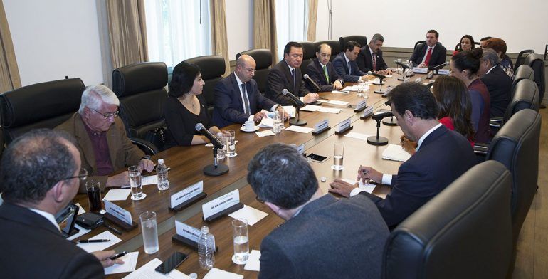 Por parte de los funcionarios federales estuvieron el subsecretario de Enlace Legislativo y Acuerdos Políticos, Felipe Solís Acero, y el titular de la Comisión Nacional de Seguridad, Renato Sales Heredia.