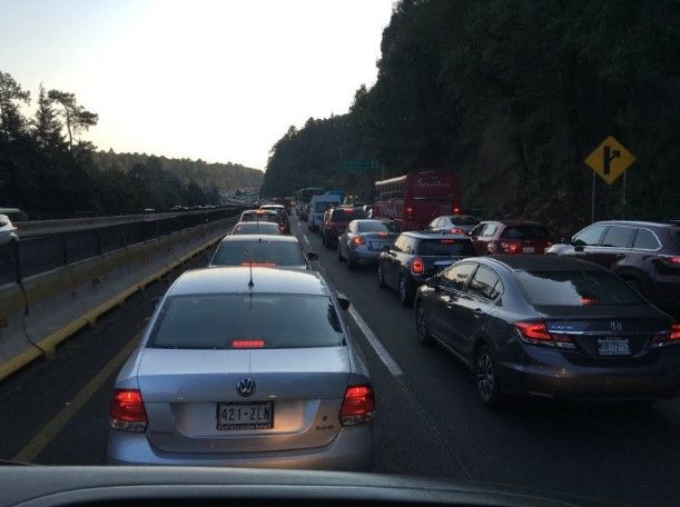 En la dirección a la Ciudad de México los automóviles están totalmente detenidos por ocho kilómetros, hasta el área de La Marquesa.