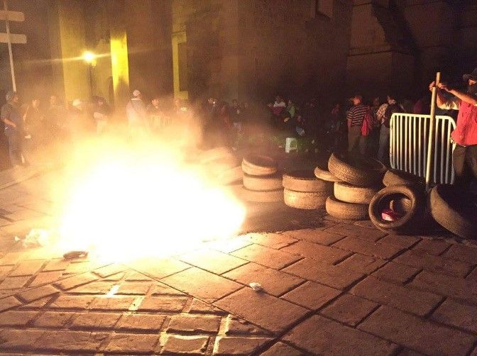 Integrantes de la Sección 22 de la CNTE  y organizaciones sociales instalaron barricadas en el Centro Histórico de Oaxaca la noche de este lunes.