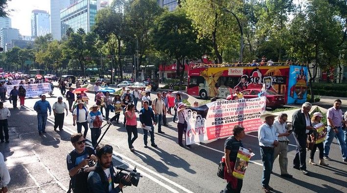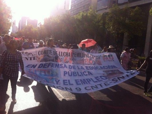 #EnCobertura Maestros de la #CNTE marcha en contra de la #ReformaEducativa pic.twitter.com/QZRkgC9mRs — Paola Guzmán (@_pguzman) October 12, 2015