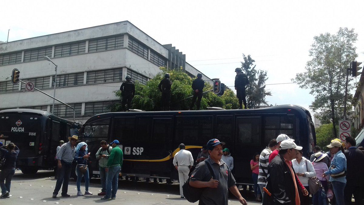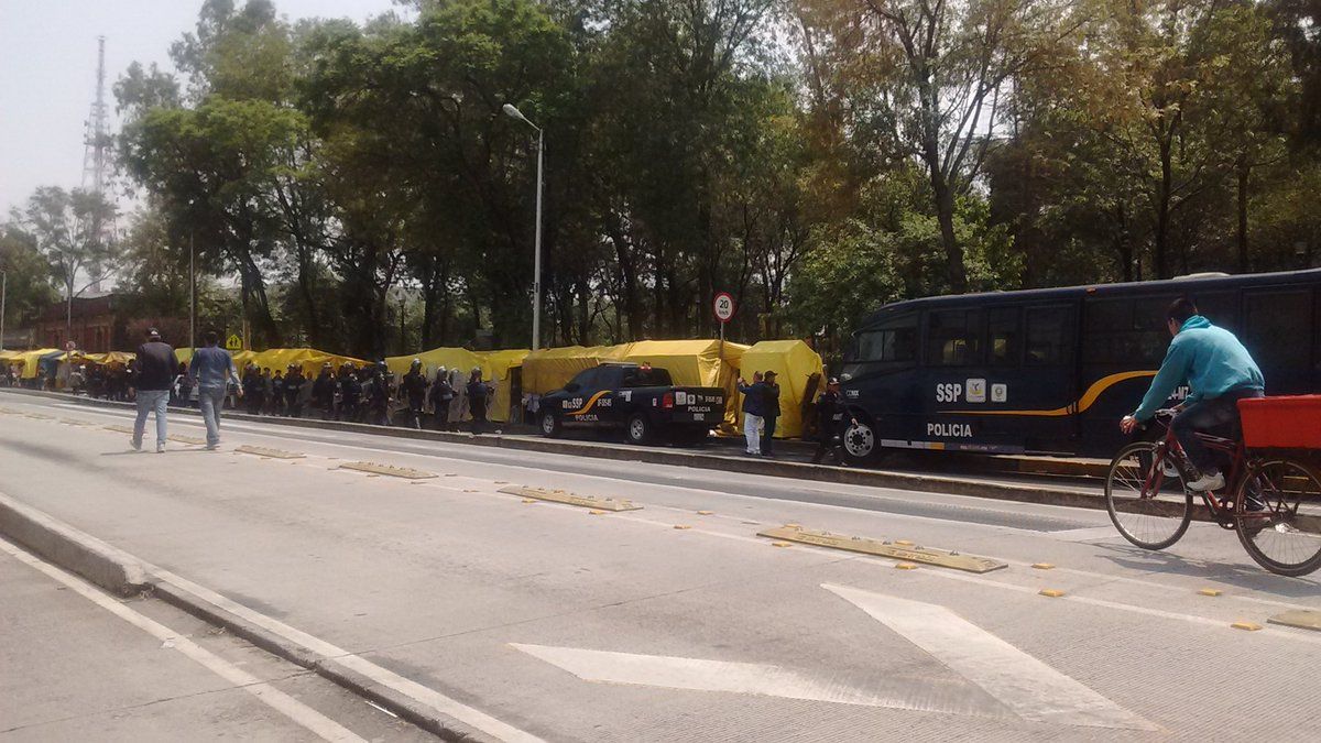 Luego que personal de la Secretaría de Seguridad Pública les impidió llegar al Aeropuerto Internacional de la Ciudad de México (AICM), tal como era el objetivo, maestros de la Coordinadora Nacional de Trabajadores de la Educación (CNTE) se repliegan al plantón ubicado en la Ciudadela, en el Centro Histórico de la Ciudad de México.
