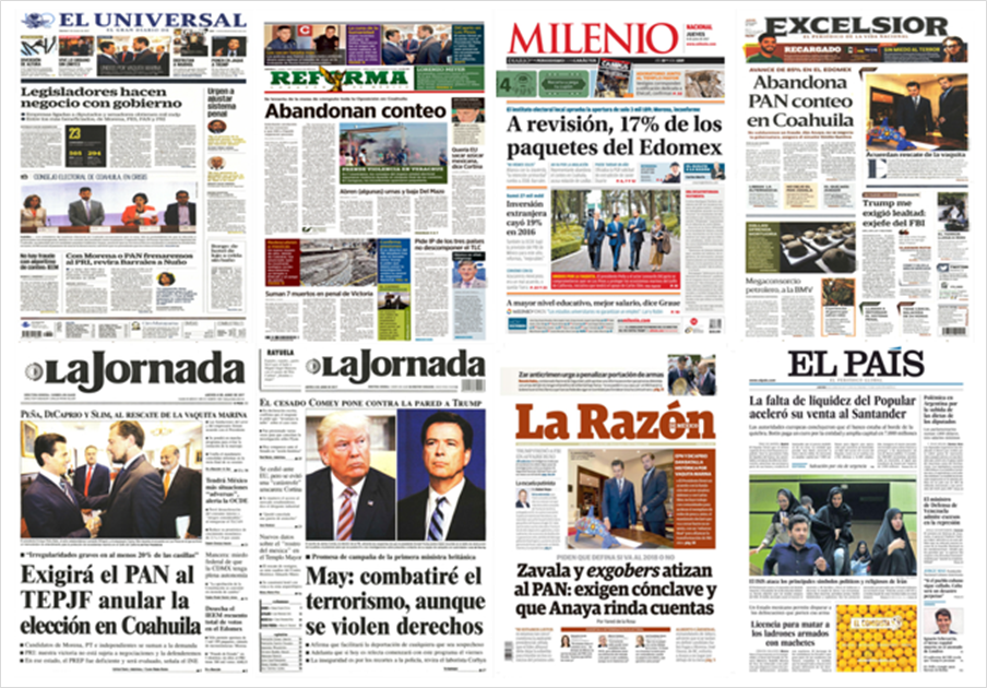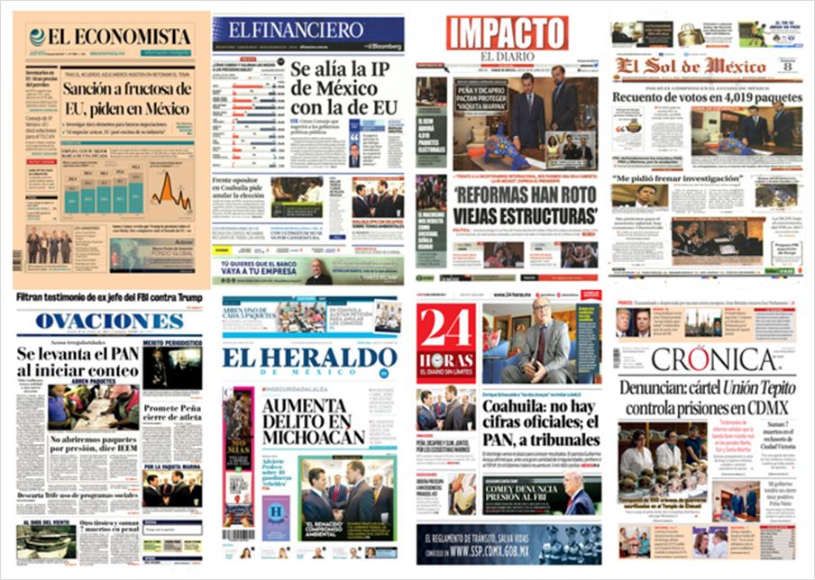 Este jueves, los principales periódicos de México destacaron en sus primeras planas que los partidos Acción Nacional, Morena y PT ordenaron el retiro de todos sus representantes en los cómputos oficiales de la elección en Coahuila, y anunciaron que acudirán al Tribunal Electoral del Poder Judicial de la Federación (TEPJF) para solicitar la anulación de los comicios del pasado domingo.