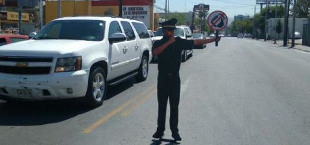 Los oficiales de cartón fueron colocados en la avenida Vasconcelos, desde Corregidora a Río Rosas.