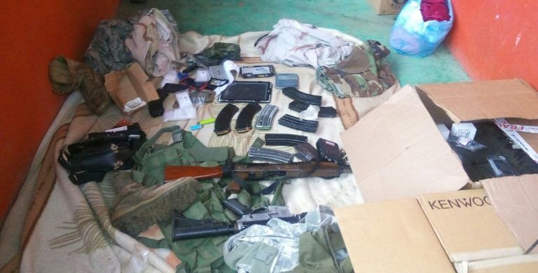 A los sujetos se les aseguraron tres armas largas, 2 r-15 y 1 ak-47, así como una pistola. También diversos cargadores, celulares, radios de comunicación, y también cuatro pantalones, cuatro camisolas, tres gorras tipo militar con camuflaje americano y un par de botas de la SEDENA.