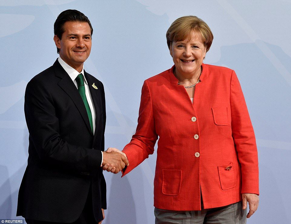 El presidente Enrique Peña Nieto arribó al Centro de Convenciones Hamburg Messe, y al igual que los demás jefes de Estado, fue recibido por la canciller alemana, Angela Merkel, para después tomarse la foto oficial.