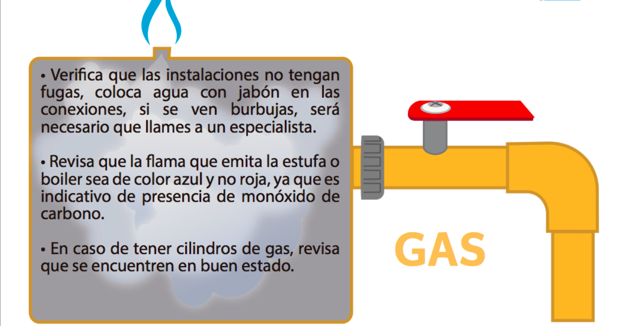 4. Así, la Secretaría ha recomendado colocar agua con jabón en las conexiones para identificar fugas (porque huela mucho a gas), nunca acerque una flama para identificar la fuga podrías provocar un accidente fatal.