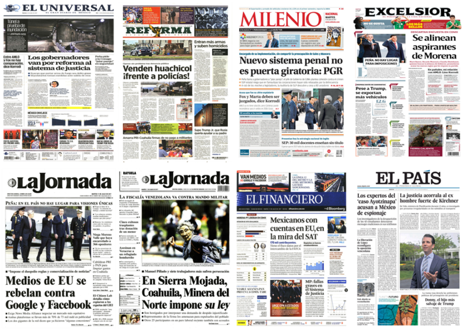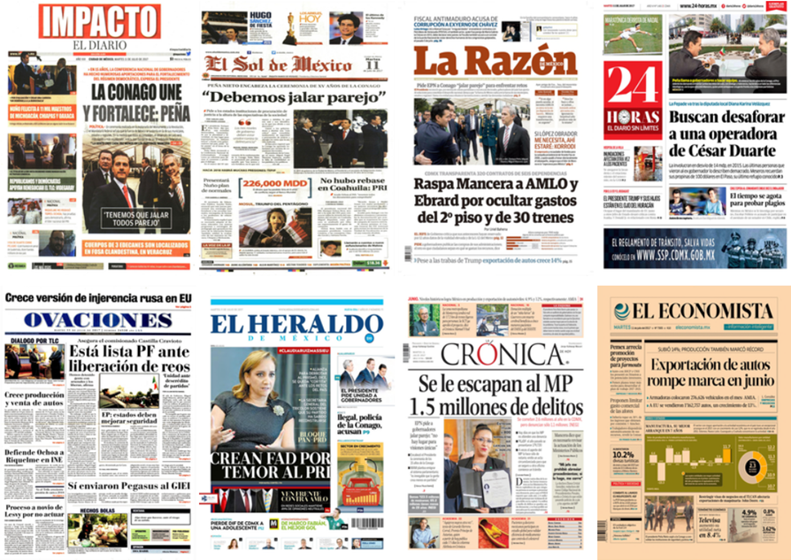 Los principales periódicos de México destacaron este martes en sus primeras planas que durante el acto por la conmemoración del XV Aniversario de la Conferencia Nacional de Gobernadores (Conago), el presidente Enrique Peña Nieto señaló que en una sociedad democrática como la nuestra, caracterizada por la pluralidad y la diversidad, no hay lugar para imposiciones ni visiones únicas.