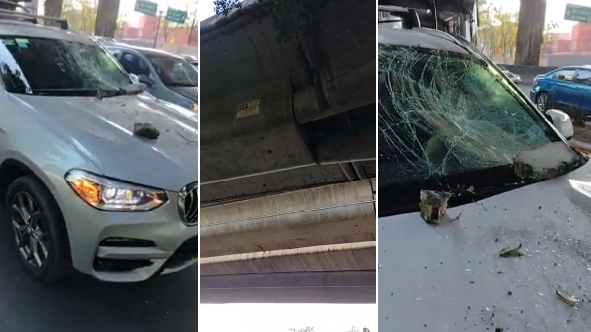 Del segundo piso del Periférico se desprendió un trozo de concreto a la altura de Avenida Las Flores, en la alcaldía Álvaro Obregón, que afectó a una automovilista, de acuerdo con reportes.