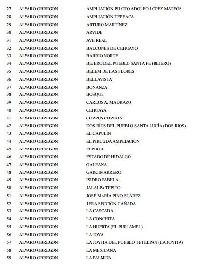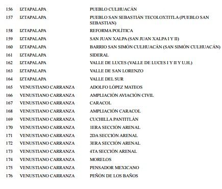 Esta es la lista de 176 colonias.