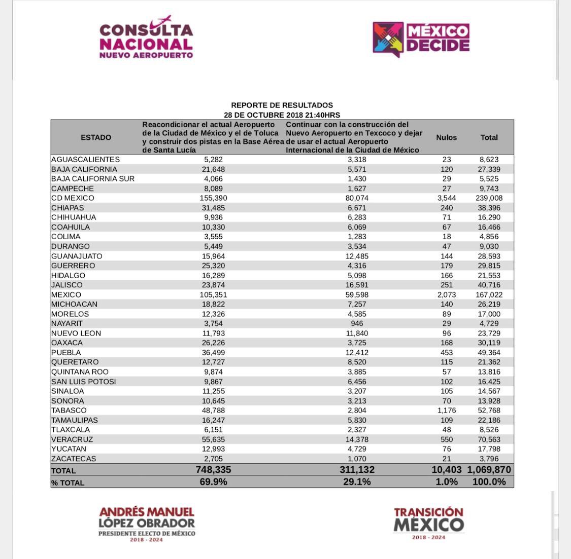 Este domingo concluyó la consulta que organizó el gobierno de transición de México para decidir el futuro del Nuevo Aeropuerto Internacional de México.