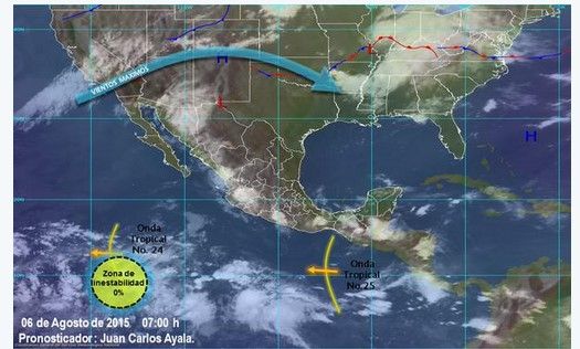 Dichas precipitaciones serán causadas por la onda tropical número 25, que se extiende sobre el oriente de Oaxaca y se desplaza hacia el oeste, que además interactuará con la entrada de humedad del Mar Caribe.
