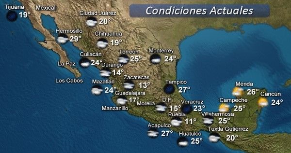 Asimismo los meteorólogos pronostican precipitaciones fuertes en Sonora, Aguascalientes, Chihuahua, Estado de México, Distrito Federal, Morelos, Puebla, Oaxaca, Chiapas, Tabasco, Veracruz, Guerrero, Yucatán y Quintana Roo.