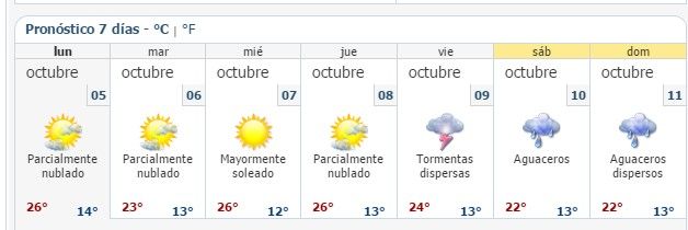 La Mesa del Norte registrará cielo medio nublado a nublado, 60 por ciento de probabilidad de precipitaciones fuertes en Chihuahua y Durango y de menor intensidad en Coahuila, Nuevo León, San Luis Potosí, Aguascalientes y Zacatecas, además de clima templado a caluroso y viento de dirección variable de 20 a 35 kilómetros por hora con rachas de 50 kilómetros por hora en Chihuahua.