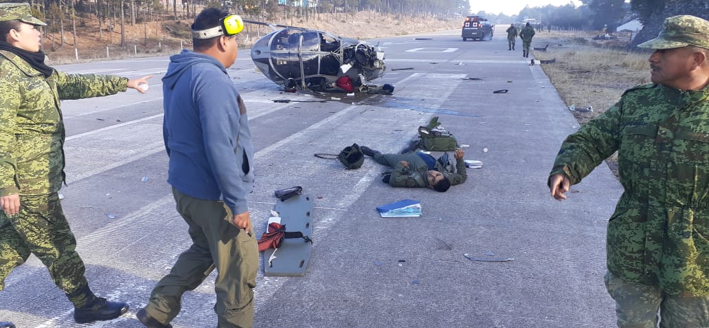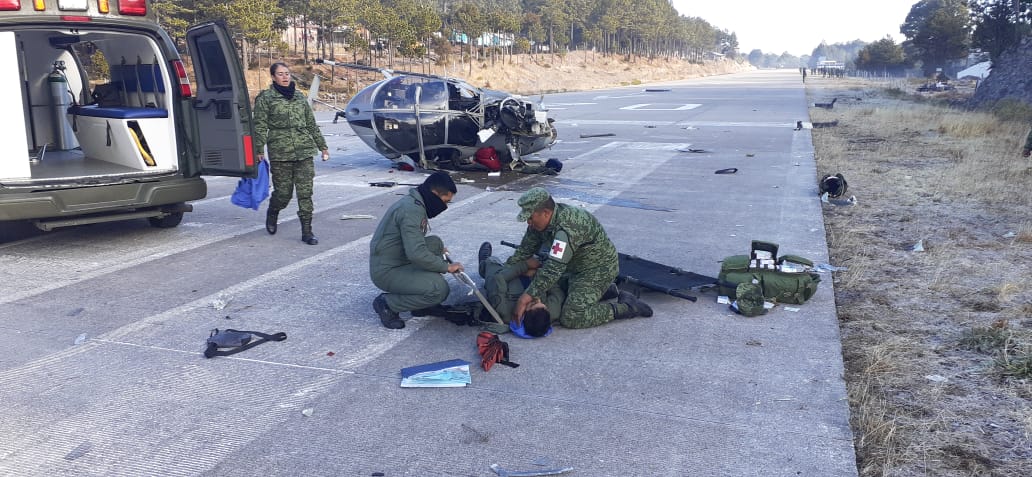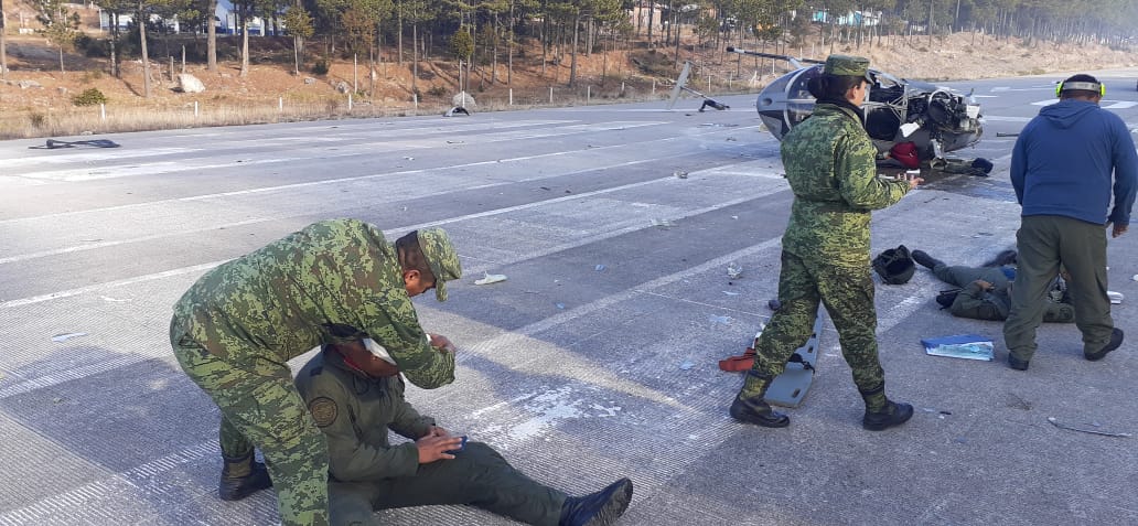 El titular de la Secretaría de la Defensa Nacional, el general Luis Cresencio Sandoval, confirmó la noticia y señaló que resultaron heridos cuatro integrantes de la tripulación, quienes reciben atención médica adecuada y se les reporta como estables.