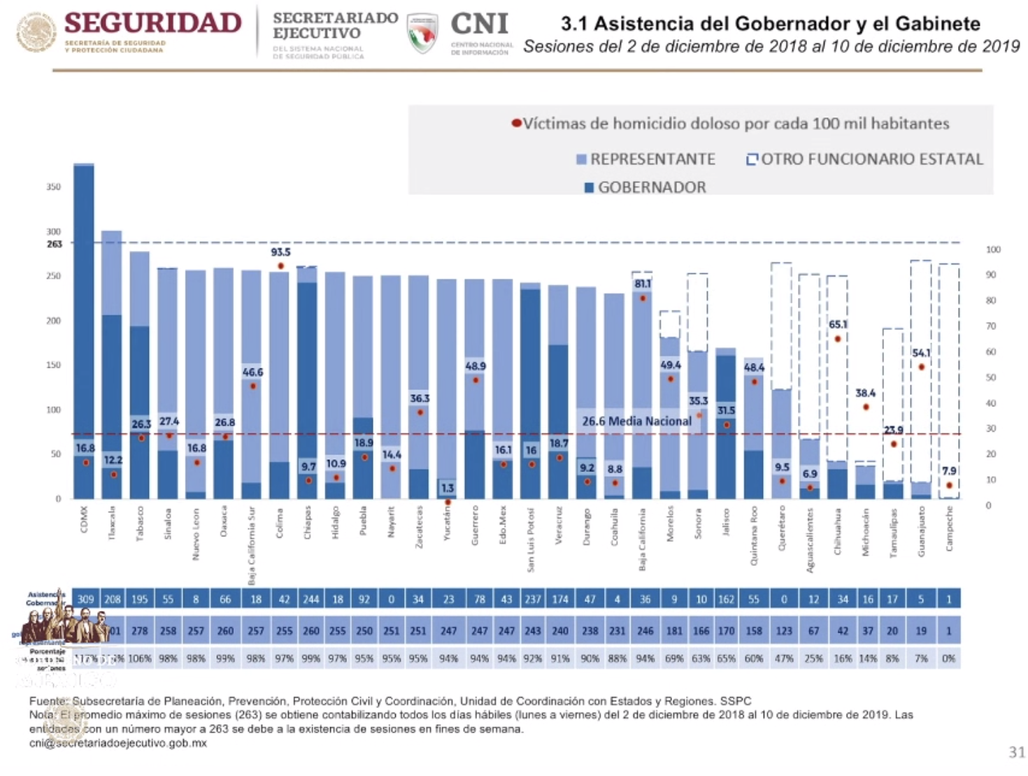 Durante la Conferencia Matutina de este martes, el secretario de Seguridad Pública, Alfonso Durazo reveló que los gobernadores de los tres estados citados, registran baja asistencia a las reuniones de seguridad donde se discute la estrategia para disminuir la incidencia delictiva en el país.