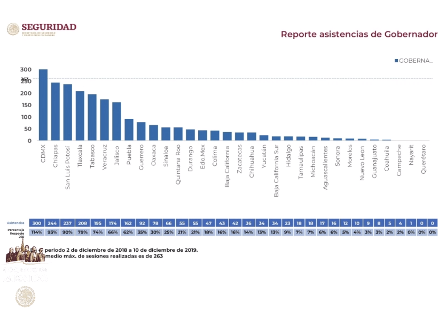 Los gobernadores que más asisten son Ciudad de México, Tlaxcala, Tabasco y Sinaloa.