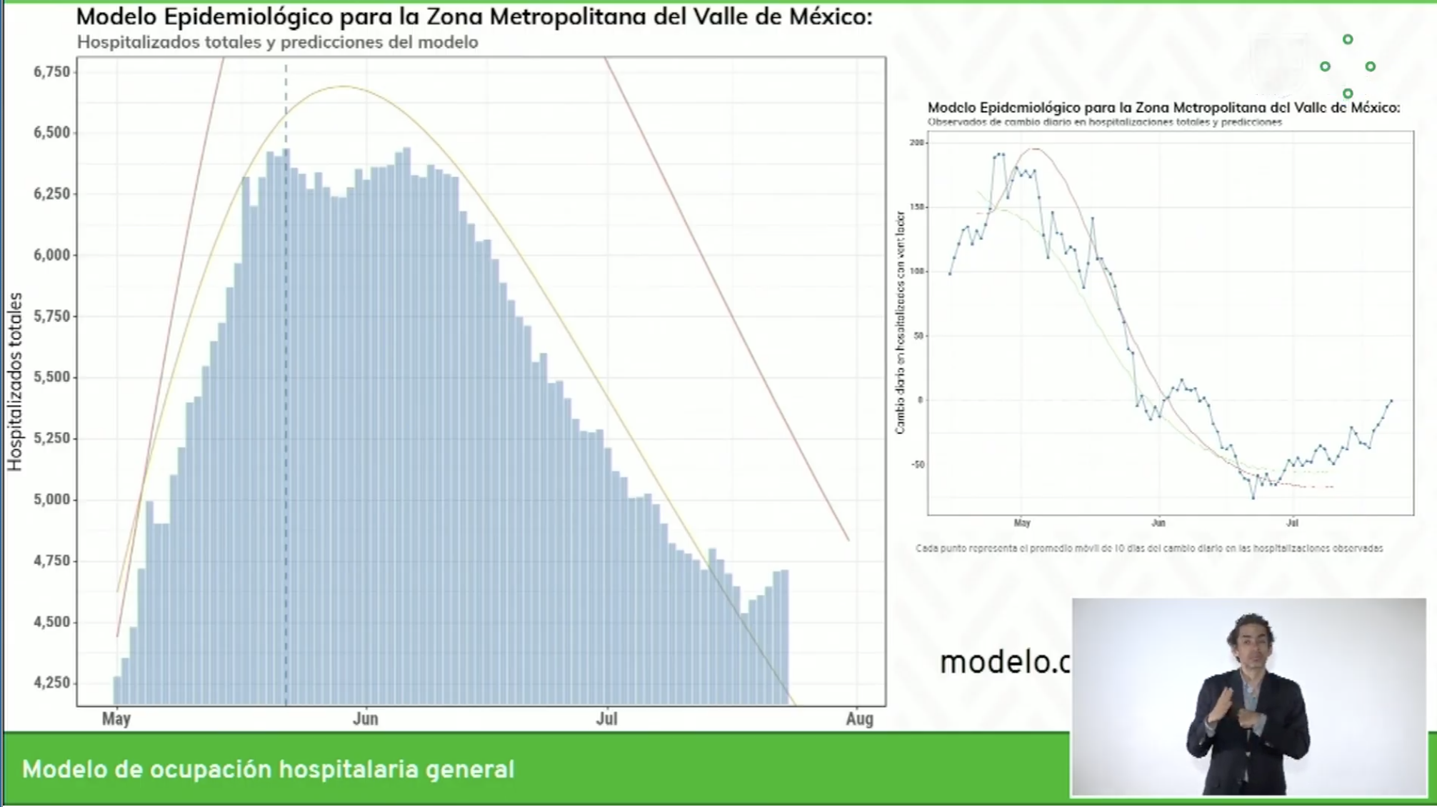 Señaló que, de acuerdo con el Mapa Epidemiológico, las predicciones pueden indicar un aumento de las hospitalizaciones en la Ciudad de México, donde, si no se cambia la tendencia de casos y hospitalizaciones, habría en octubre un crecimiento exponencial del COVID-19 mayor al presentado a inicios de junio.