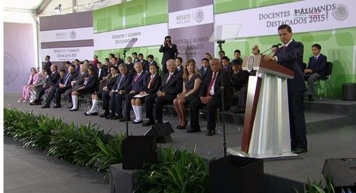 Al encabezar la reunión “Docentes y Alumnos Destacados 2015”, el presidente Enrique Peña Nieto pidió a los maestros de México comprometidos con su vocación y a inculcar valores, que no se dejen engañar porque de ninguna manera se pretende privatizar la educación.